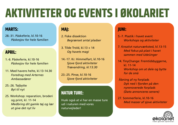 Økolariet tilbyder udover at du kan gå på opdagelse i udstillingerne, også aktiviteter og events.